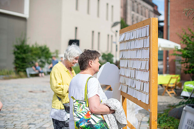 Niedrigschwellige Kreativangebote für Besucherinnen und Besucher – vom Stempeln über Collagieren bis zum Weiter- oder Umschreiben von Texten. Ideal, um ins Gespräch zu kommen und kleine Erinnerungsstücke zu schaffen.